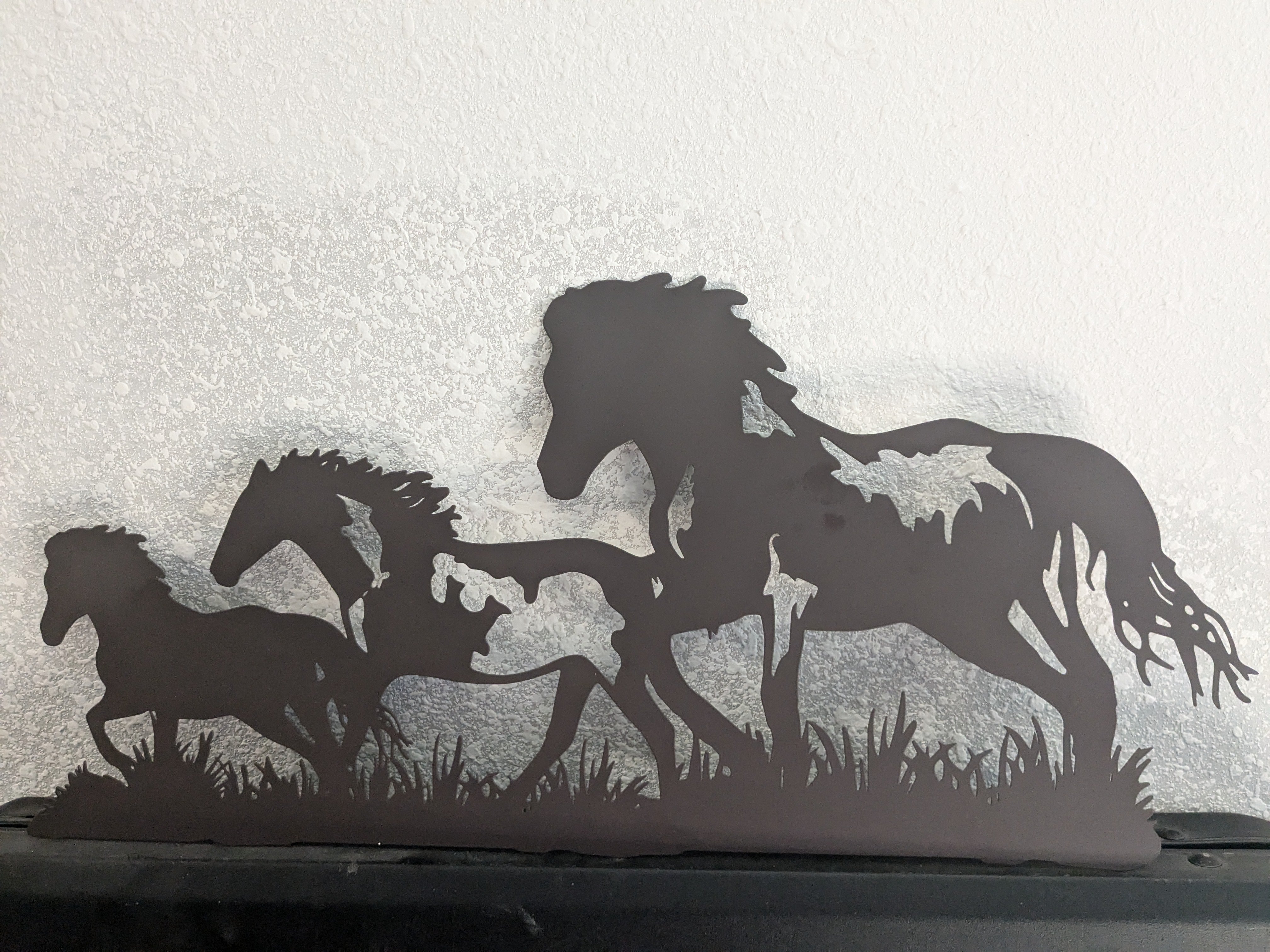 running free and wild horses wall decor, measures 32"W x 17.5"H. Discover the wonder and awe of horses with this reminder wall plaque in your home or little one's room! Love a horse today!