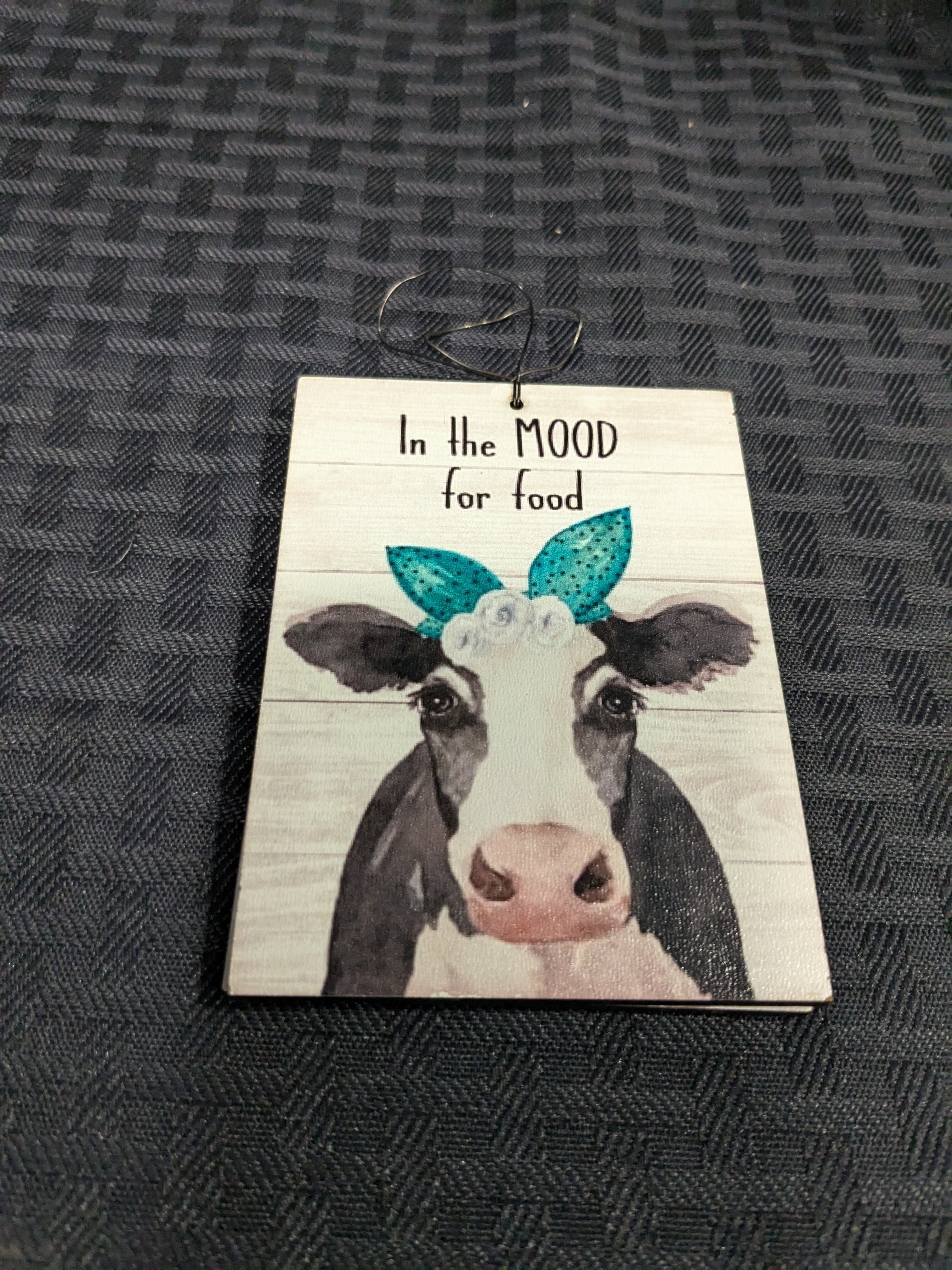 "let's pig out" says it all.  You can at least enjoy it while you are doing it!  Measures 2.75"W x 3.25"L.
